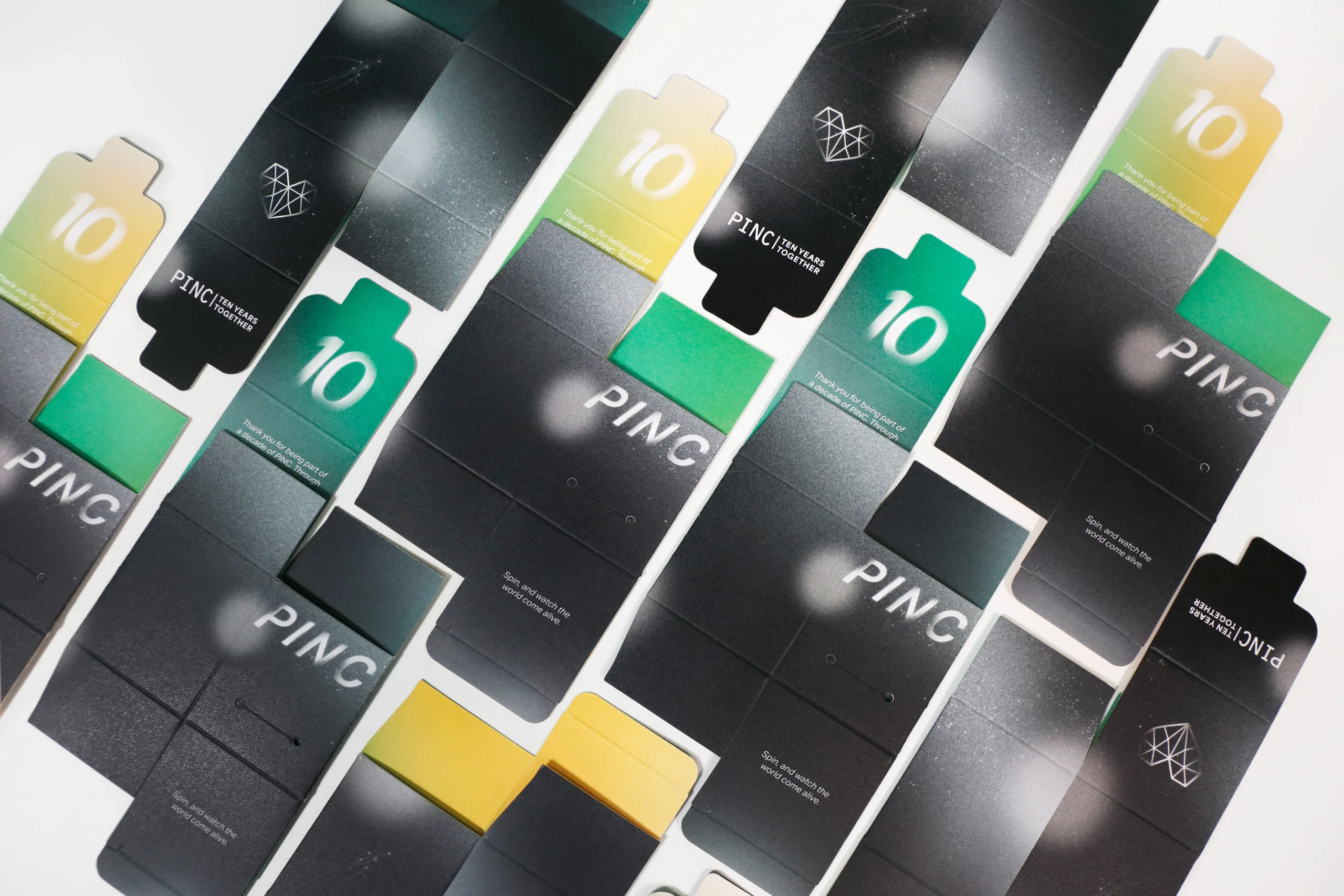 INCORPORATING SOFT GRADIENTS, VARIETY OF COLORS, AND GRAIN, are what we think encapsulates pinc’s special 10 years. key is in the graceful, smooth movements.