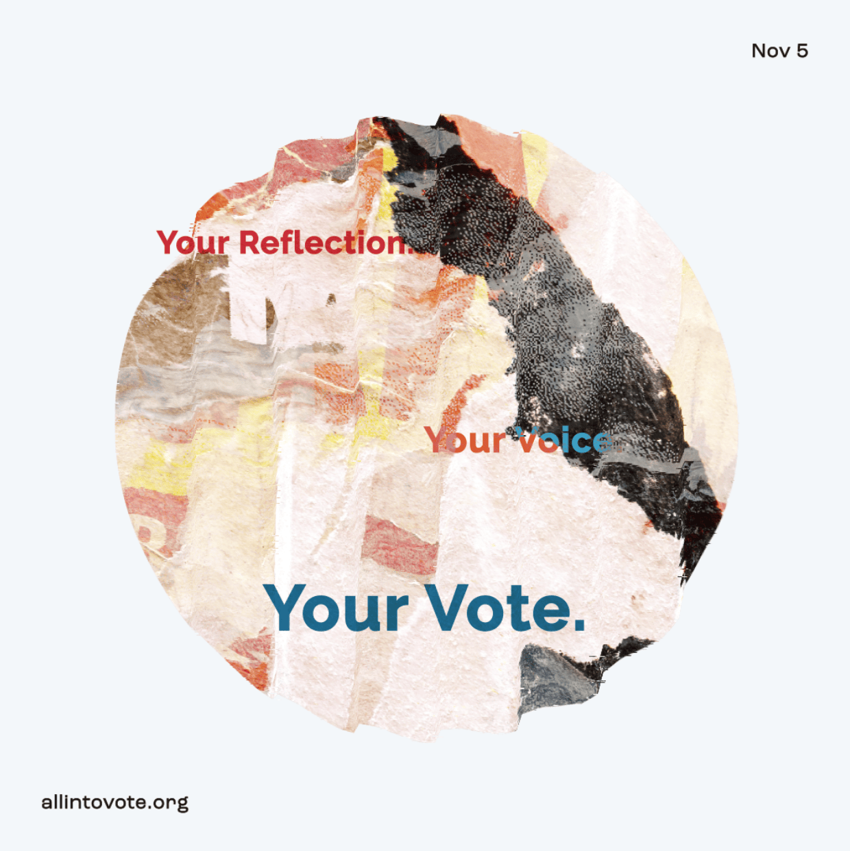 The design shifted to simplified collage after early drafts did not meet client expectations. Layered imagery and striking text now speak to young voters, highlighting the lasting impact of their voice